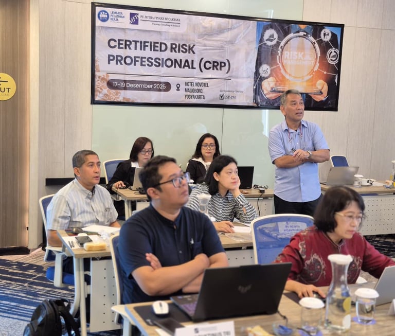 "Saya mengikuti pelatihan Certified Risk Professional dengan MfW. Pelatihan berjalan dengan lancar, para pengajar kompeten dan komunikatif, dan panitianya sangat membantu sekali. Sangat recommended."