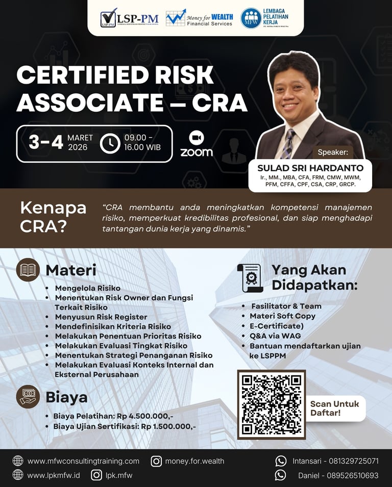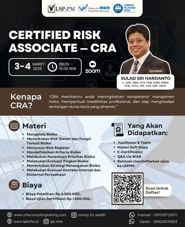 Pendaftaran kelas Certified Risk Associate (CRA)-LSPPM (BNSP) sudah dibuka!